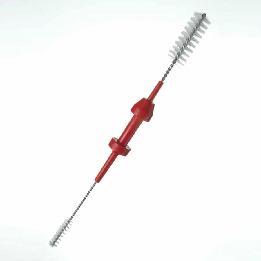 ScopeValet™ Dual End Valve Brush is used to safely remove debris from the valve openings and dials of the control head of flexible scopes.