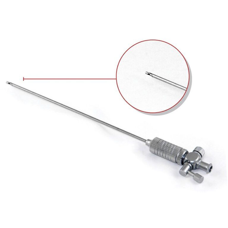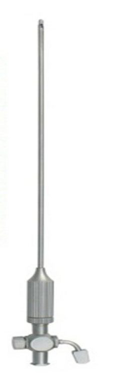 Standard Co2 Insufflation Needle used in veterinary laparoscopy procedures. Comes in various lengths for various sized patients. Sharpened tip for quick insertion.